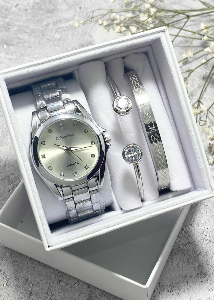 Подарочный набор для женщин часы, 2 браслета + коробка 2361553
