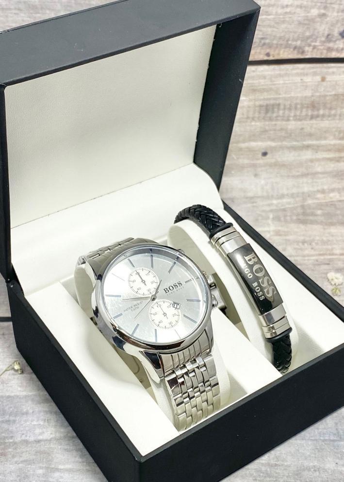 Подарочный набор для мужчины часы и браслет + коробка 2361721