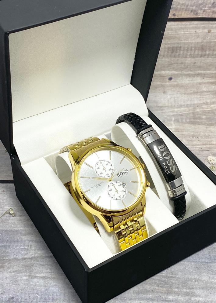 Подарочный набор для мужчины часы и браслет + коробка 2361724